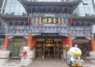 After walking for about half an hour, we found the street and continued to the end. We saw a small side street, and when we walked in to take photos of the spectacular doors, we saw a Roasted Duck restaurant, Quanjaude (Address: 9 Shuaifuyuan Hu Tong, Wangfujing, Doncheng, Beijing, China, 100005)