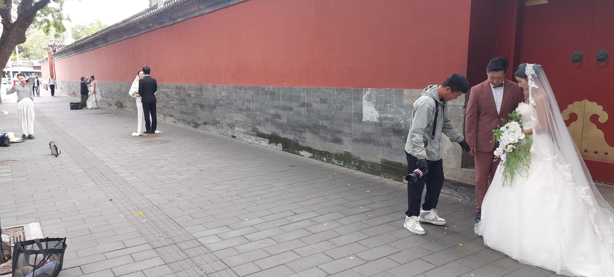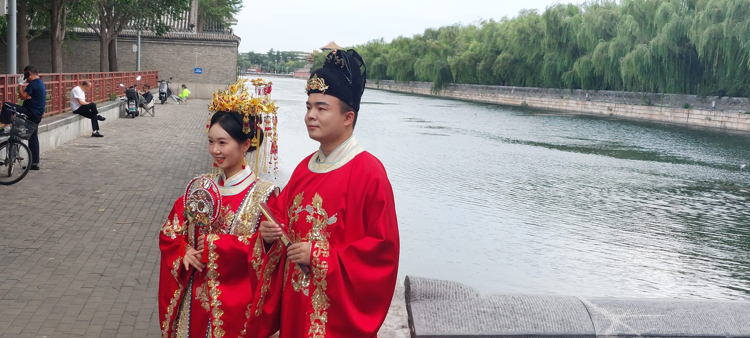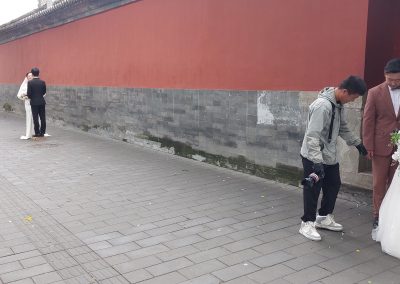 Beijing, happy couple getting married at the Forbidden city wall and moat